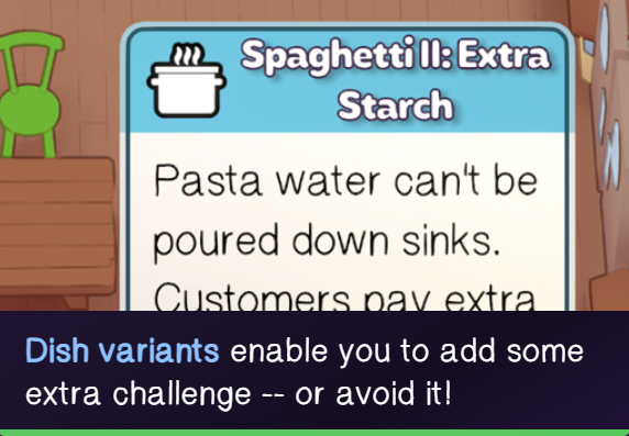 (Where you are the restaurant owner, and what you want is extra coins for cards that make dishes harder).